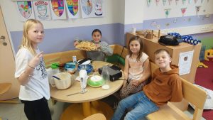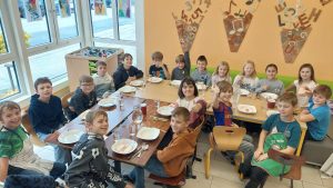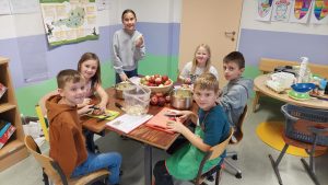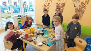 Die 4. Klasse nahm im Oktober an der Ama-Bio-Volksschulaktion teil. Wir beschäftigten uns näher mit Produkten aus der Landwirtschaft. In Gruppenarbeiten gestalteten die Kinder Plakate. Höhepunkt war ein gemeinsamer Kochtag. Mit Begeisterung wurde gekocht und wir genossen Kürbissuppe, Palatschinken und Waffeln mit Apfelmus.